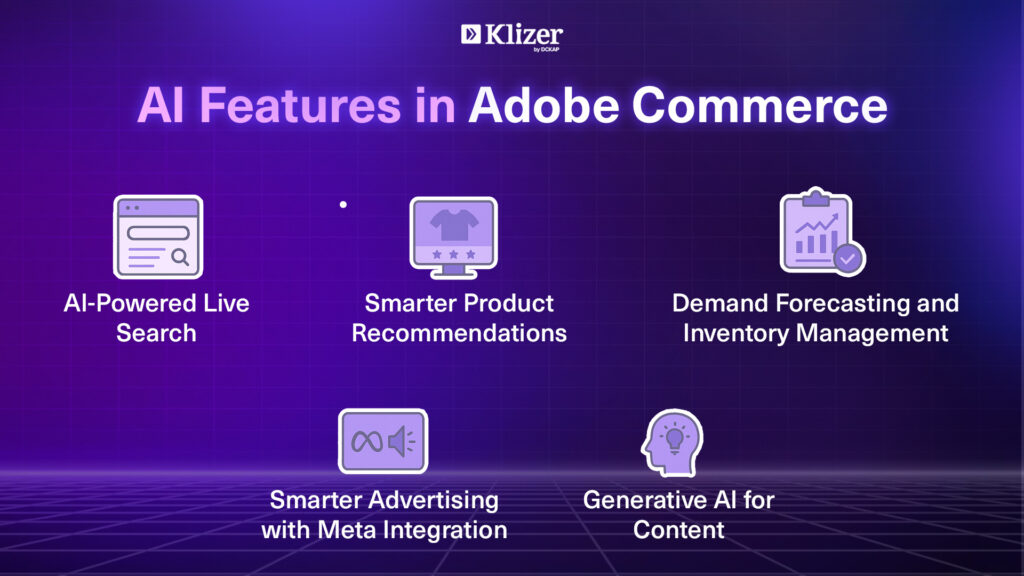 Adobe Commerce has built-in AI tools that aim at making the shopping experience better for customers and simpler for businesses. Let’s look at some of the key features.
