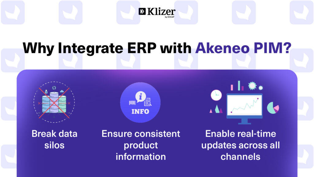 ERP systems manage back-office tasks like inventory, pricing, and purchasing, while Akeneo focuses on product experience and enrichment. When these two systems are not connected, information becomes scattered and hard to keep accurate.
