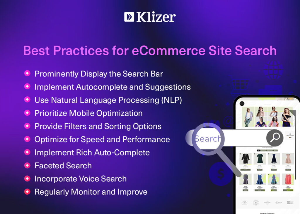 If you want to add an ecommerce site search to your online store, partner with a top ecommerce solution agency like Klizer. Their ecommerce experts will help you set it up and enhance your website’s user experience.