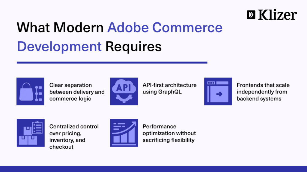 It enables development teams to enhance performance without modifying commerce logic, evolve storefront experiences without rewriting backend systems, and introduce new capabilities without disrupting existing workflows. More importantly, it avoids the long-term risk of pushing business rules into the frontend.