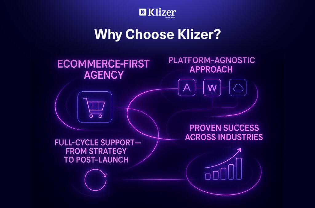 We at Klizer are not just developers-we are ecommerce growth partners. We apply our knowledge, clarity, and pure partnership mindset to strategy, design, development, and beyond.